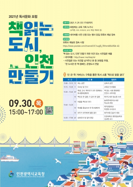 [충청뉴스큐] 인천시교육청은 2021년 ‘책 읽는 도시, 인천 만들기’ 독서문화 포럼을 30일 개최한다.