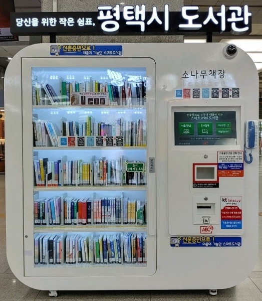 스마트도서관은 자가 도서대출반납 기기로 베스트셀러, 신간도서 책 읽는 평택 선정도서 등 200여권의 도서를 보유하고 있다.