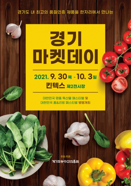 [충청뉴스큐] 경기도내 우수 농특산물 판로 확대와 홍보를 위한 ‘2021 경기마켓데이’가 9월 30일부터 오는 10월 3일까지 고양 킨텍스 제2전시장 10홀에서 열린다.