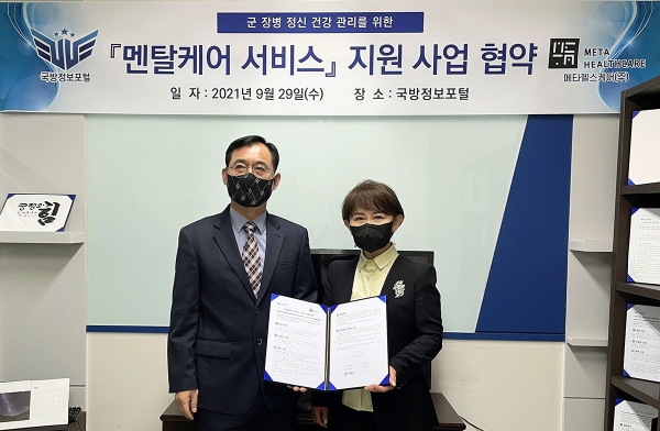 [충청뉴스큐] 지난 9월 29일 국방정보포털과 메타헬스케어가 군 장병 정신건강 관리를 위한 ‘멘탈케어 서비스’ 지원을 위한 협약을 체결했다.