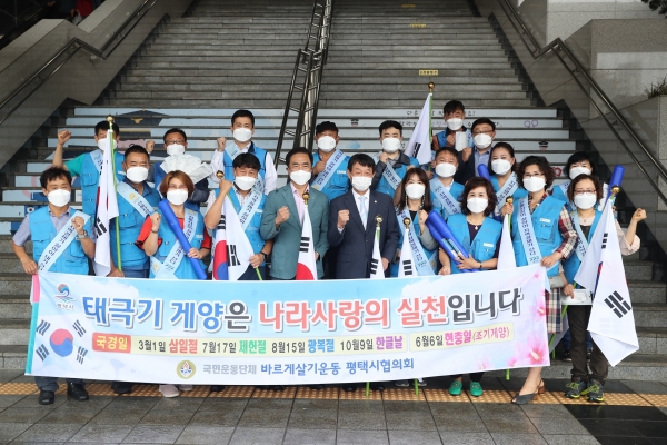 한편 정장선 평택시장과 시의회 홍선의 의장, 김영해 도의원 등이 캠페인에 참여하며 개천절을 비롯해 한글날 등 국경일이 많은 10월을 위해 나라사랑 실천의 첫걸음인 태극기 달기 운동을 펼치는 바르게살기운동 회원들을 격려하고 감사의 인사를 전했다.