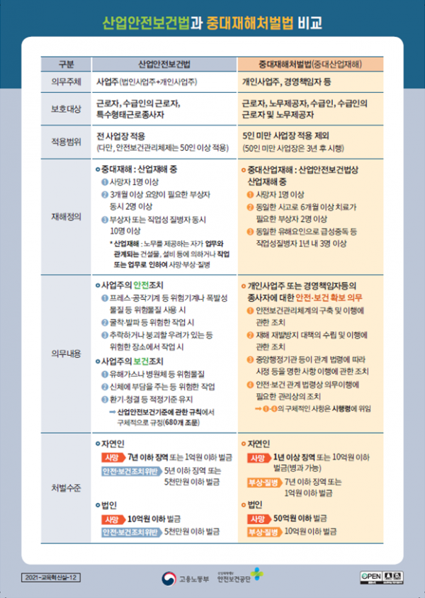 안전보건관리체계의 구축과 운영은 2022년 1월 27일부터 50인 이상 사업장에 시행되는 ‘중대재해 처벌 등에 관한 법률’에 규정되어 있는 사업주 및 경영책임자가 준수해야 하는 주요한 안전보건 확보 의무이다.