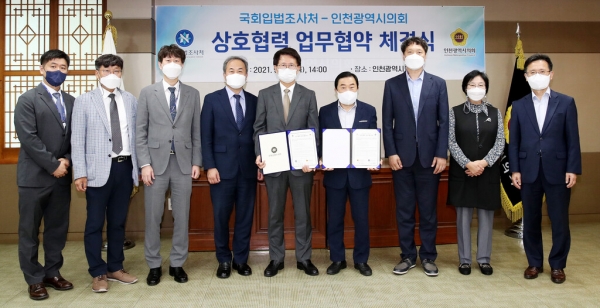 인천시의회는 30일 자치입법기구로서의 위상 정립과 전문성을 강화하기 위해 국회 입법조사처와 상호교류 및 협력을 위한 업무협약을 체결했다.