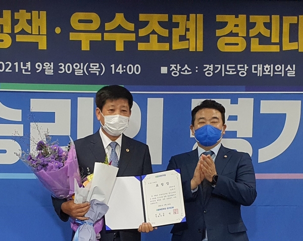 [충청뉴스큐] 경기도의회 안전행정위원회 김판수 위원장이 ‘2021년 더불어민주당 경기도당 우수정책·우수조례 경진대회’에서 우수 조례 부문 도당위원장상을 수상했다.