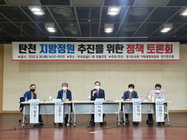 [충청뉴스큐] 경기도의회 기획재정위원회 이제영 의원은 30일 성남 한국잡월드 한울강당에서 ‘탄천 지방정원 추진을 위한 정책 토론회’를 개최했다.
