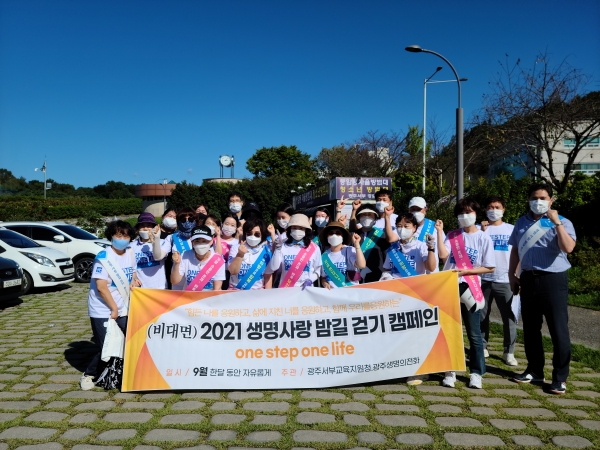 캠페인 마지막 날인 30일에는 광주서부교육지원청 민주시민교육지원과, 광주생명의전화, 지역민, 학생 등 40여명이 풍암호수공원 일대 5.9km를 걸으며 진행했다.