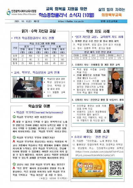 [충청뉴스큐] 인천북부교육지원청은 1일 교육회복을 위한 학습상담사 협의회를 개최하고 학습종합클리닉 소식지를 발행했다.