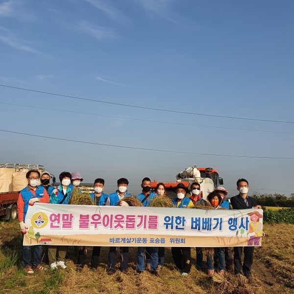 포승읍 바르게살기위원회는 생활이 어려운 이웃을 돕기 위해 매년 휴경농지를 임차해 봄에 모를 심고 가을철에 벼를 수확해 오고 있다.