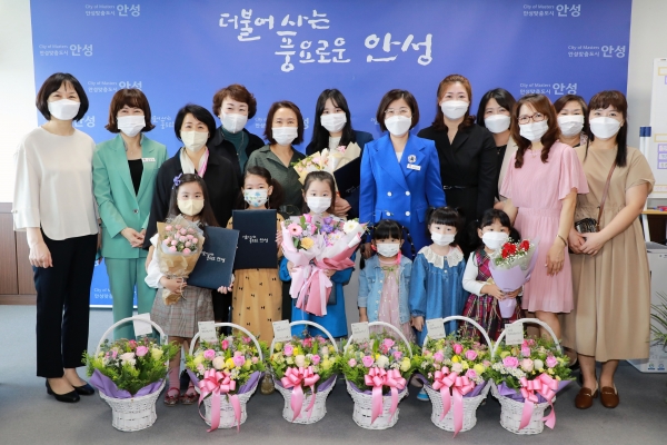 [충청뉴스큐] 안성시(시장 김보라)는 10월 1일 안성시청 본관 2층 시장실에서 안성시어린이집연합회에서 주관한 ‘2021년 동화구연 발표대회’ 수상자들에게 상장을 전달했다.