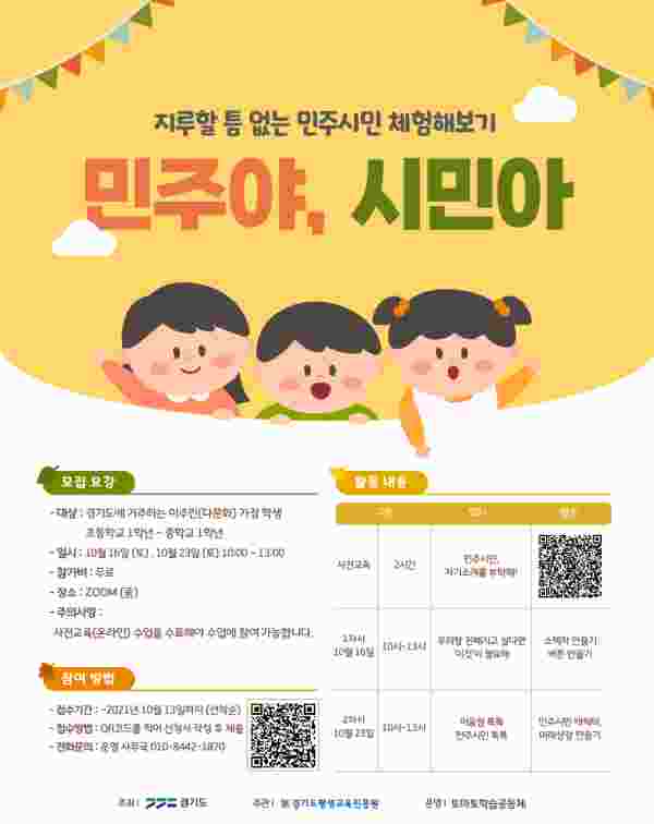 [충청뉴스큐] 경기도평생교육진흥원이 민주시민교육 프로그램에 참여할 경기도 거주 다문화 가정 학생과 학부모를 10월 13일까지 모집한다.