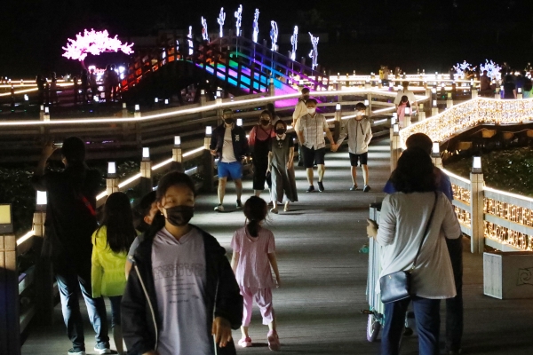 [충청뉴스큐] 이번 2021 안성맞춤 남사당 바우덕이 축제를 개최하며 안성맞춤랜드에는 ‘안성맞춤, 빛노리’라는 부제로 빛의 마중길, 빛노리 수변길, 소원대박 터널길 등 각기 다른 3가지 테마로 야간경관을 조성했다.