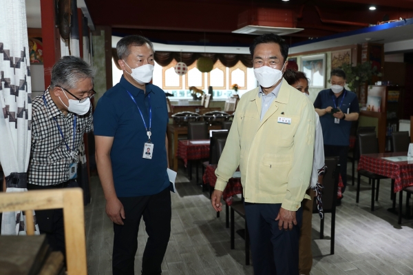 [충청뉴스큐] 정장선 평택시장은 지난 2일 평택동 소재 외국인 전용 음식점을 방문해, 더 이상 외국인 확진자가 발생하지 않도록 외국인 출입자에 대한 코로나19 예방접종은 물론 코로나19 방역수칙 준수에 철저를 기할 것을 당부했다.