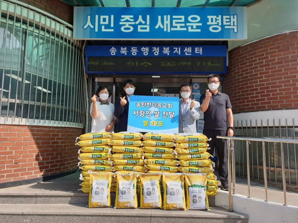 송탄한마음교회는 경제적으로 어려움을 겪는 이웃들을 위해 꾸준히 쌀과 마스크 등을 기부하며 지역기부문화에 힘쓰고 있다.
