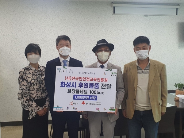 [충청뉴스큐] 사단법인 전국민안전교육진흥원이 5일 화성시에 저소득층에게 전달해달라며 화장품 세트를 후원했다.