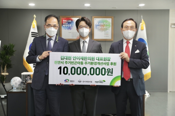 이날 기부된 후원금은 천안시 동남구에 거주하고 있는 주거빈곤 아동 가정의 주거 신축을 위해 사용될 예정이다.