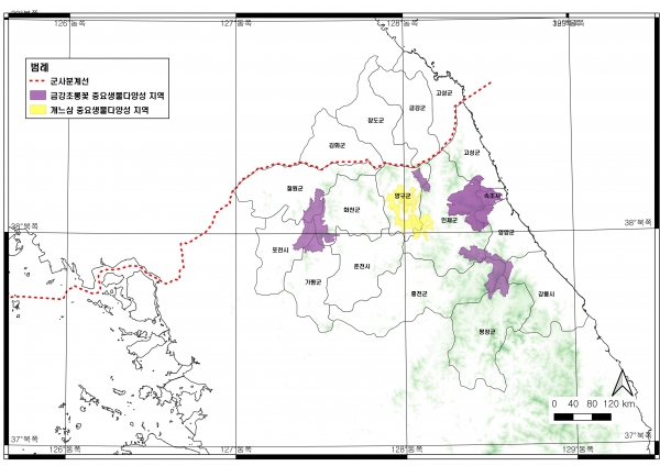 이번에 지정하는 지역은 IUCN 적색목록의 위기종인 개느삼 또는 금강초롱꽃의 자생지이며 면적은 1,339.5㎢으로 지리적으로 강원도 양구군 등 13개 시·군이 포함된다.