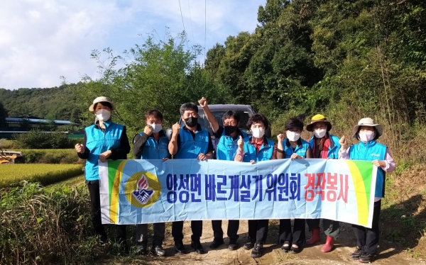 이걸필 양성면장은 “바쁜 농번기임에도 불구하고 이번 수확을 위해 지금까지 수고해 주신 바르게살기위원회 회원들께 감사드리며 앞으로도 지속적인 관심과 활동을 부탁드린다”고 전했다.