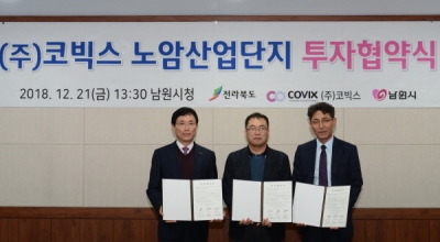 전라북도와 남원시는 12. 21. 남원시청 시장실에서 이환주 남원시장, 차주하 전라북도 투자유치과장 등이 참석한 가운데 ㈜코빅스가 전라북도 남원시로 이전하기로 하는 투자협약을 체결했다.