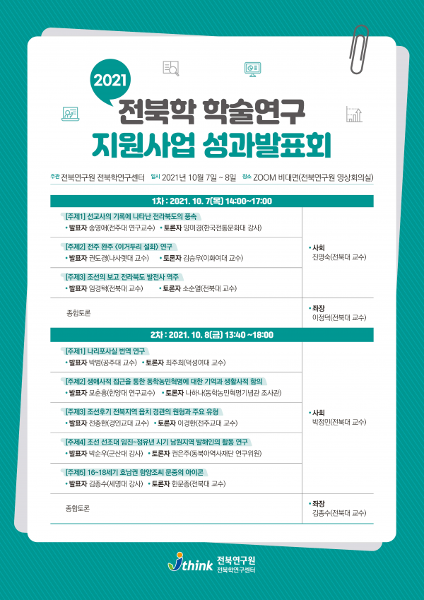 [충청뉴스큐] 전북연구원 전북학연구센터가 7일과 8일 양일간 전북연구원에서 ‘전북학 학술연구지원사업 성과발표회’를 개최했다.