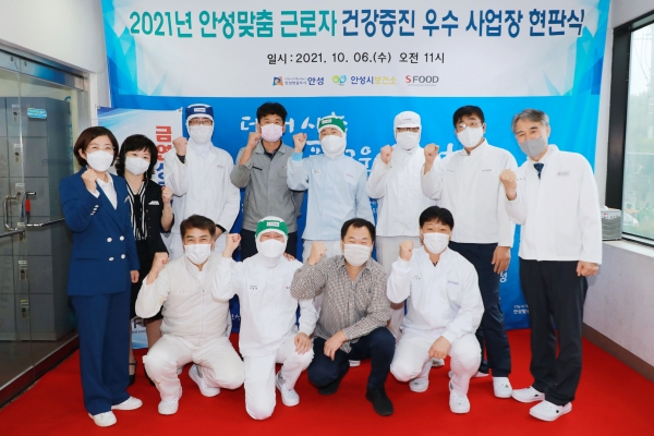 [충청뉴스큐] 안성시보건소는 지난 6일 서운면 소재의 에쓰푸드를 ‘안성맞춤 근로자 건강증진 우수사업장’ 제1호로 지정하고 안성시 및 사업장 관계자들이 참석한 가운데 현판식을 진행했다.