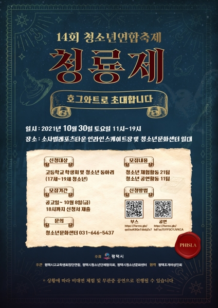 [충청뉴스큐] 평택시 위탁기관인 평택시청소년재단 평택시청소년문화센터는 제14회 청소년연합축제 ‘청룡제’에 참여할 체험부스 및 공연팀을 8일까지 모집한다.