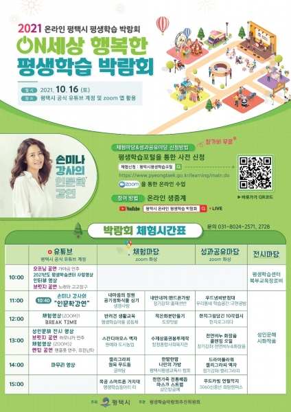 ‘On세상 행복한 평생학습박람회’를 주제로 진행되는 이번 행사는 평택시 공식 유튜브 채널로 송출되며 평택시 평생학습포털을 통해 사전 신청한 수강생을 대상으로 15개의 체험 프로그램이 앱을 이용해 다채롭게 운영된다.