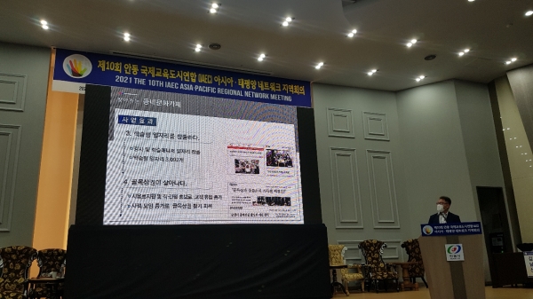 이 자리에서 장영재 교육지원과장은 발표자로 나서 ‘더불어 성장하는 평생학습도시-군산’이란 주제로 ‘찾아가는 동네문화카페 사업’과 국내 유일 시 직영의 ‘발달장애인평생학습관’ 운영 사례를 발표하면서 IAEC 회원도시 관계자들의 주목과 찬사를 받았다.