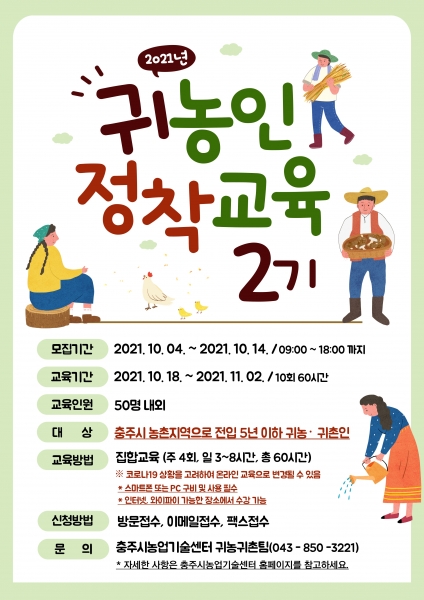 또한, 우수 귀농 농장 견학 및 충주 주요 관광지를 탐방할 수 있는 현장체험 교육도 진행될 예정이다.