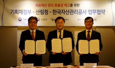 [충청뉴스큐] 산림청은 21일 서울 종로구 세종문화회관 소회의실에서 기획재정부, 한국자산관리공사와 ‘국유재산의 효율적인 관리를 위한 업무협약’을 체결했다고 밝혔다.