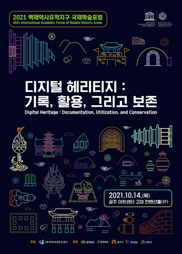 이번 “디지털 헤리티지: 기록, 활용, 그리고 보존”학술포럼은 백제세계유산센터가 주최하고 문화재청과 충청남도, 전북도청, 공주시, 부여군, 익산시에서 후원한다.