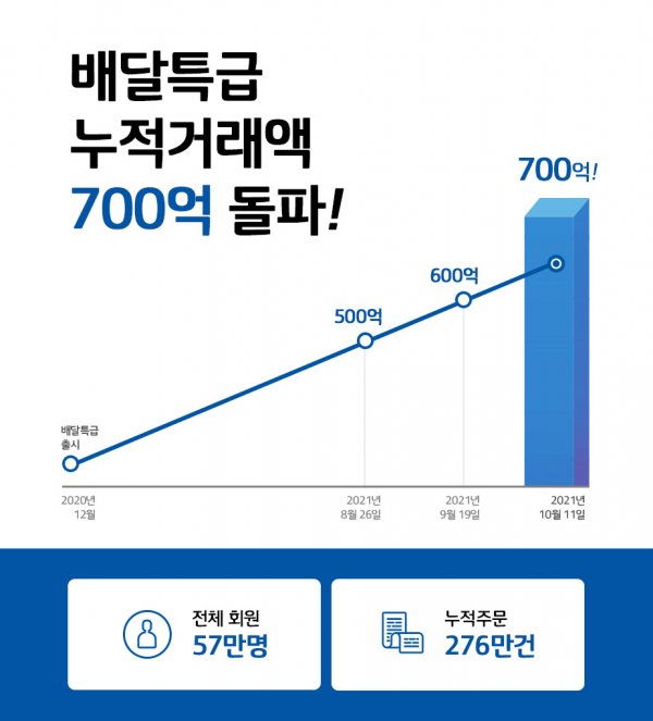 경기도주식회사는 지난 11일 기준 배달특급 누적 거래액이 700억원을 넘었다고 12일 밝혔다.