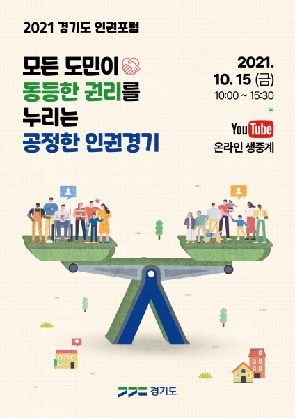 [충청뉴스큐] 경기도는 오는 15일 ‘모든 도민이 동등한 권리를 누리는 공정한 인권경기’를 주제로 ‘2021 경기도 인권포럼’을 개최한다고 13일 밝혔다.