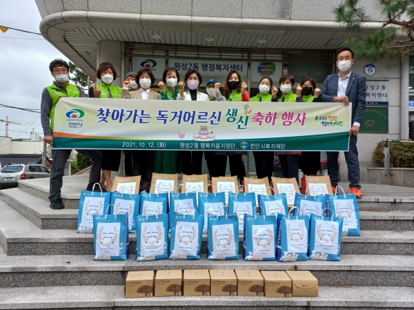[충청뉴스큐] 천안시 원성2동 행복키움지원단이 지난 12일 홀로 사시는 어르신들을 모시고 생신잔치를 열어 드리는 행사를 진행했다.