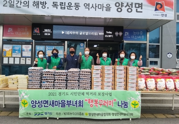 [충청뉴스큐] 안성시 양성면 새마을부녀회는 지난 12일 양성면사무소 주차장에서 이웃사랑과 나눔을 실천하기 위한 ‘농산물꾸러미 나눔 행사’를 가졌다.