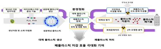 과기정통부는 ’22년부터 방사선 기술을 융합해 폐플라스틱 저감 순환 구조에서 현재 병목을 일으키고 있는 한계 기술들을 극복하는 연구개발사업을 신규 추진할 예정이다.