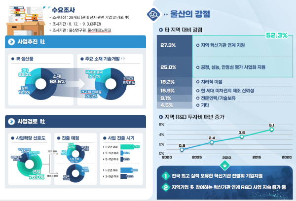 울산시와 울산테크노파크 등 혁신기관, 지역 내 이차전지 관련 기업 등 18개 단체는 ‘울산 전지산업 발전을 위한 업무협력 공동선언’도 추진했다.