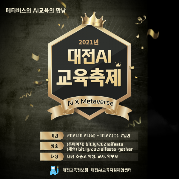 또한 지식샘터를 통한 AI 교사 연수, 대전AI교육 축제 홈페이지를 활용한 다채로운 컨텐츠 전시 및 경품 이벤트가 진행될 예정이다.