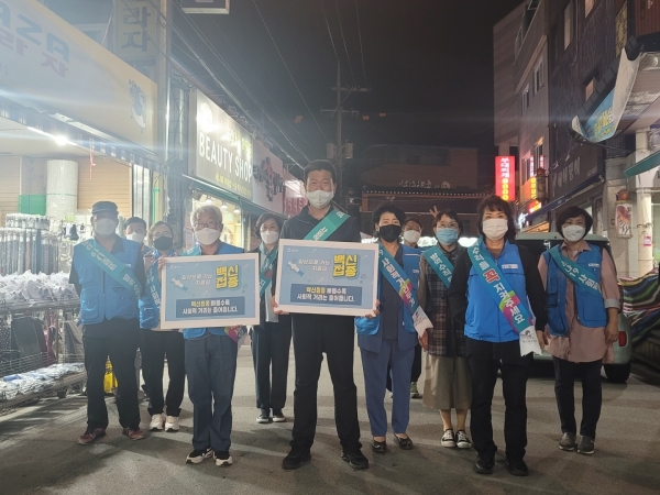 우창곤 회장은 “백신접종은 우리 가족과 건강을 지켜줄 뿐만 아니라 지역경제 활성화와 일상 회복의 지름길”이라며 “앞으로도 지속적으로 백신접종 홍보에 적극 봉사하겠다”고 밝혔다.