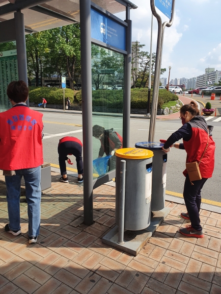 이번 환경정비활동은 동직원 및 단체 회원 30여명이 참여했으며 버스승강장 소독과 책임구역에 방치된 쓰레기 등을 집중 수거했다.