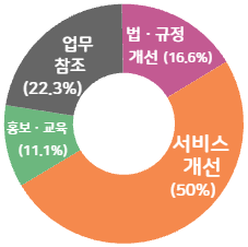 국민권익위가 매주 불편사항을 발굴해 통보하면 관계기관은 법·규정 및 서비스 개선, 홍보·조사 등 다양한 방법으로 이를 개선하고 있으며 이번에 제도개선으로 활용된 비율은 64.2%이다.