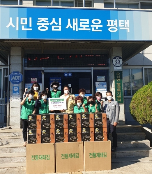 [충청뉴스큐] 평택시 오성면행정복지센터는 지난 14일 오성면새마을부녀회로부터 어려운 이웃을 돕기를 위한 후원물품으로 김 60박스를 기탁 받았다고 밝혔다.