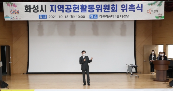 [충청뉴스큐] 화성시가 18일 동탄 다원이음터에서 ‘지역공헌활동위원 위촉식’을 개최하고 ‘지역공헌활동정책’도입을 예고했다.