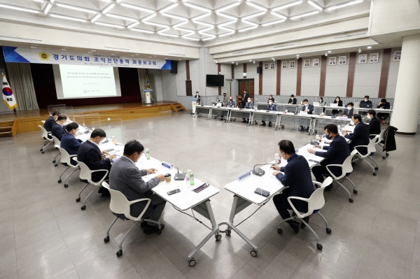 [충청뉴스큐] 경기도의회는 18일 오전 의회 대회의실에서 ‘2021년 경기도의회 사무처 조직진단 및 조직체계 개선 연구용역 최종보고회’를 개최하고 지방자치법 개정에 따른 경기도의회 조직개선 및 운영 방안에 대해 집중적으로 논의했다.
