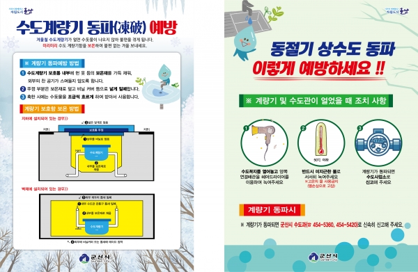 시는 본격적인 겨울 추위가 다가오기 전인 11월부터 전시 전광판 등 각종 매체를 통해 동파방지요령 등에 대해 홍보를 실시하고 동파예방요령에 대한 안내 전단지 2만매를 제작, 읍면동주민센터와 수도검침원 등을 통해 배포하기로 했다.