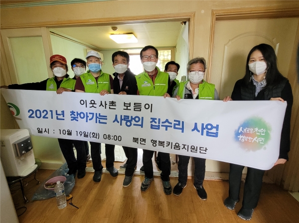 [충청뉴스큐] 천안시 북면 행복키움지원단이 지난 19일 맞춤형복지팀과 함께 북면 상동리에 위치한 중앙아파트 주거취약계층 가구의 집수리 봉사활동을 실시했다.