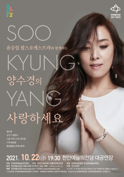 [충청뉴스큐] 천안문화재단은 윤승업 팝스오케스트라와 함께하는 양수경의 ‘사랑하세요’가 오는 22일 오후 7시 30분 천안예술의전당 대공연장에서 열린다고 밝혔다.