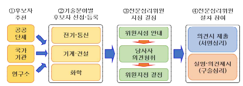 이를 위해 지난 8월부터 기술 변화가 빨리 진행되거나 현장 지식이 필요한 11개 기술 분야를 선정해 전문심리위원 후보자를 모집 했으며 현재까지 약 130명의 후보자가 확보된 상태이다.