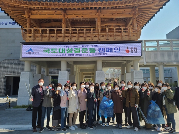 [충청뉴스큐] 세종특별자치시 다정동이 지난 20일 통장협의회, 다정동 관계자 등 30여명이 참여한 가운데 근린공원, 상가주변 등에서 ‘국토대청결운동’을 실시했다.