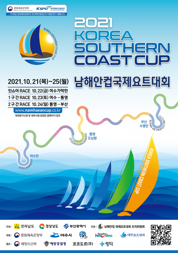 [충청뉴스큐] 부산시는 오는 21일부터 25일까지 5일간 여수 신항에서 출발해 통영 도남항을 거쳐 부산 수영만 요트경기장에 도착하는 일정으로 ‘2021 남해안컵 국제요트대회’를 개최한다고 밝혔다.