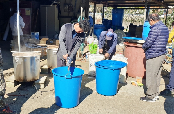 친환경 농자재 실습교육은 황토유황, 자닮오일 백두옹, 석회보르도액 등 병해충 방제에 탁월한 효과가 있는 친환경 농자재를 현장교육을 통해 자가 제조해 활용할 수 있도록 교육하고 있다.